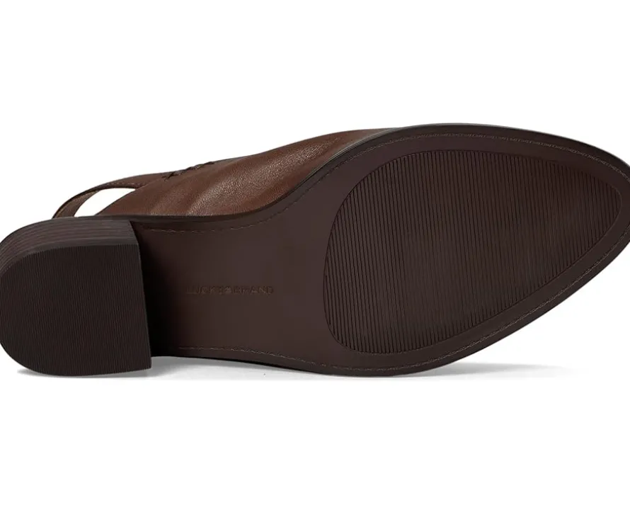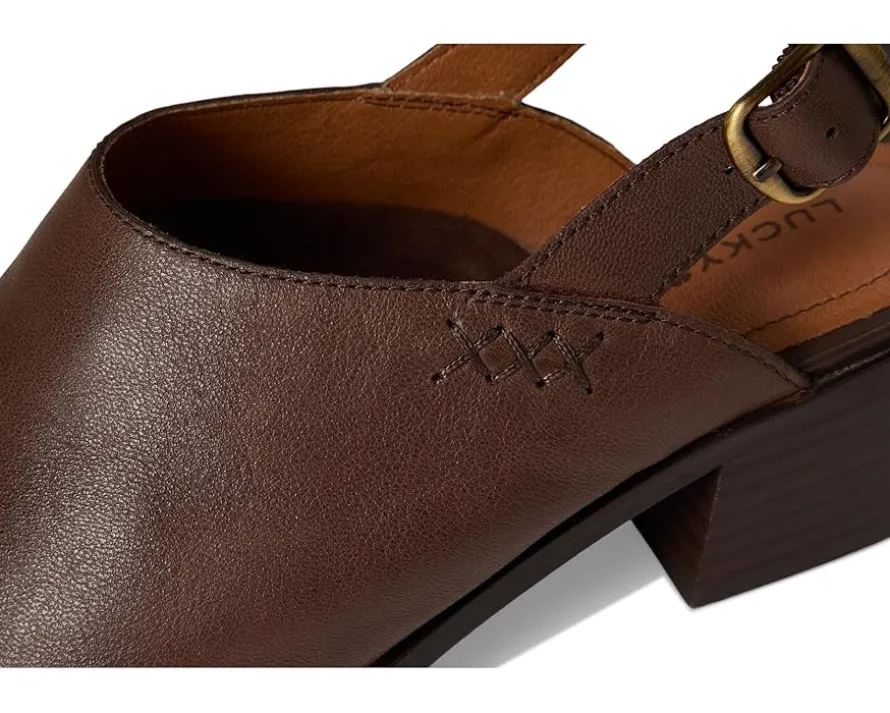 - The Lucky Brand® Mylody is your go-to fall shoe. This slingback loafer is a true staple featuring a clean leather upper, almond toe design, stack heel, and adjustable heel strap.