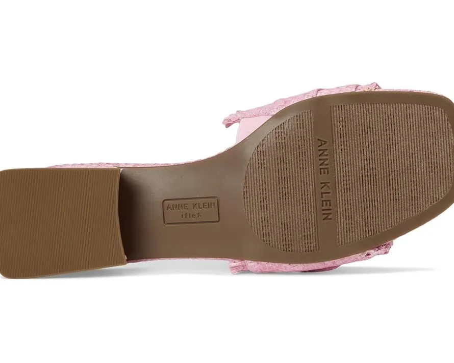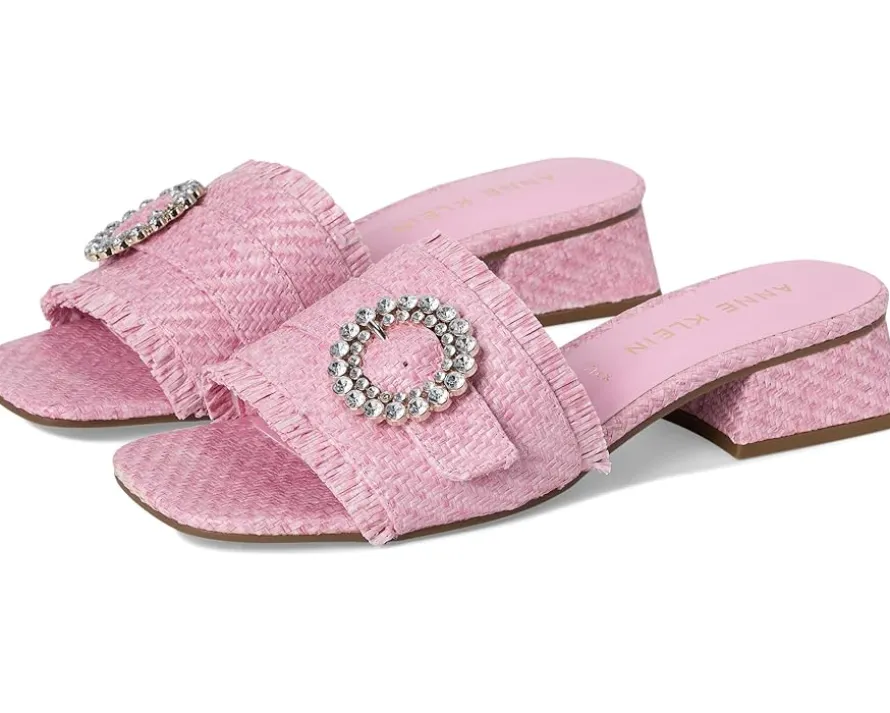 - Add a touch of comfort and style with the Anne Klein® Nahla sandals. Designed with short block heels, a cushioned footbed, and a chic woven mesh upper, these sandals effortlessly blend practicality with sophisticated flair. They are made of a rubber insole and mesh lining. These banded sandals feature a chic square toe shape and a dazzling crystal buckle detail that adds just the right amount of sparkle. The frayed edges lend a trendy, fashion-forward touch, while the low-block heels ensure comfort without compromising on style. The iFlex Technology is designed for ultimate comfort and offers a 90-degree footbend. A must-have for any modern wardrobe, these slip-on sandals are perfect for elevating casual looks or adding a polished finish to dressier outfits.