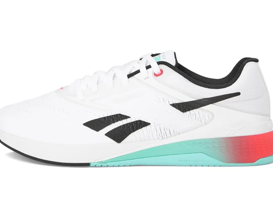 - Get ready to crush your fitness goals and move with confidence – the Nano X5 by Reebok® is your perfect workout partner! Engineered for versatility, these athletic shoes for men and women are built to jump, climb, and conquer any workout with unwavering confidence. Featuring a premium FLEXWEAVE polyester upper, they offer a 360-degree locked-in fit for superior comfort and stability, while the decoupled METASPLIT rubber outsole enhances flexibility and runnability. Designed for both performance and style, the Lift and Run Chassis system optimizes agility, speed, and endurance. With responsive cushioning, these shoes deliver the lightweight feel of running shoes while maintaining the stability of training shoes.