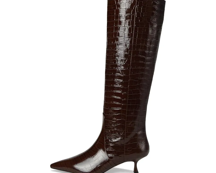 - Hit the streets with whimsy flair wearing Stuart Weitzman® Naomi 50 Boot. The mid-top footwear features leather upper and lining construction with pointed toe silhouette complementing the sleek stiletto heel.