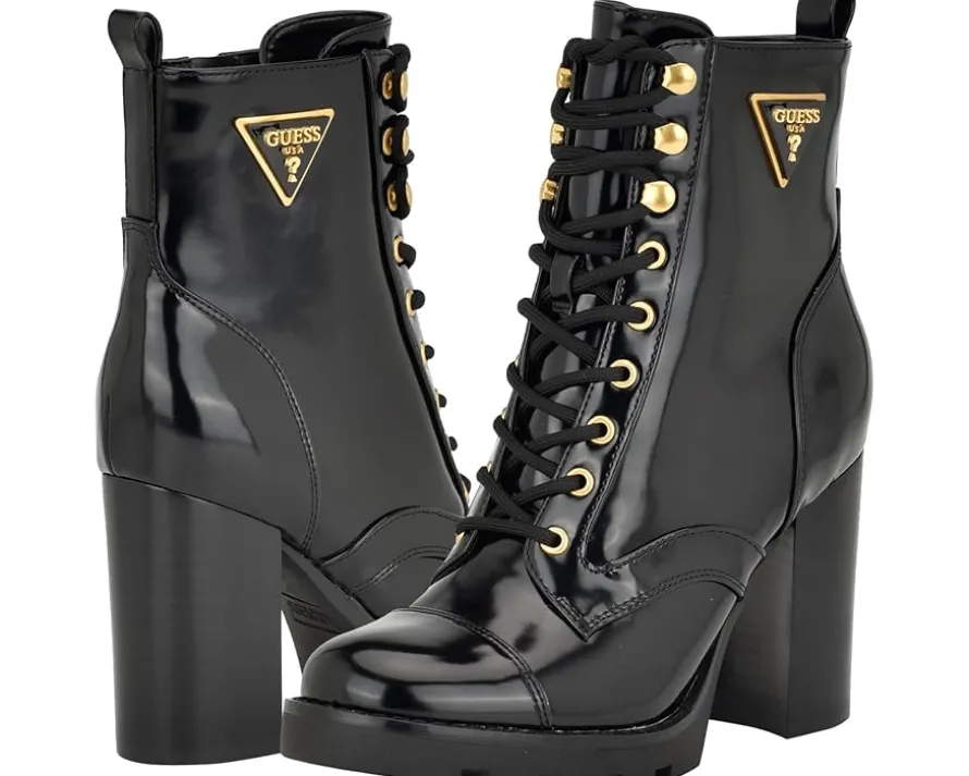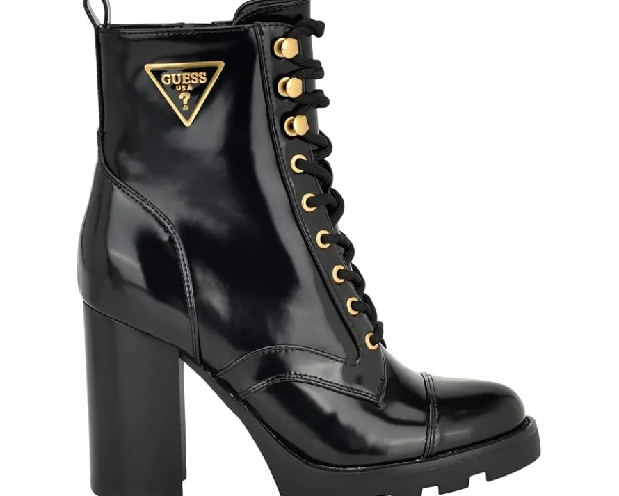 - Elevate your fall-ready look in the GUESS® Neadyn bootie. Featuring a lace-up with inside zipper, round toe silhouette with a sturdy block heel and pull tab in back.