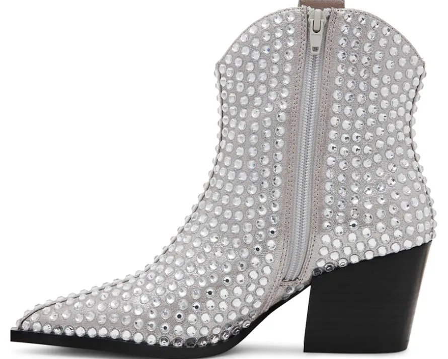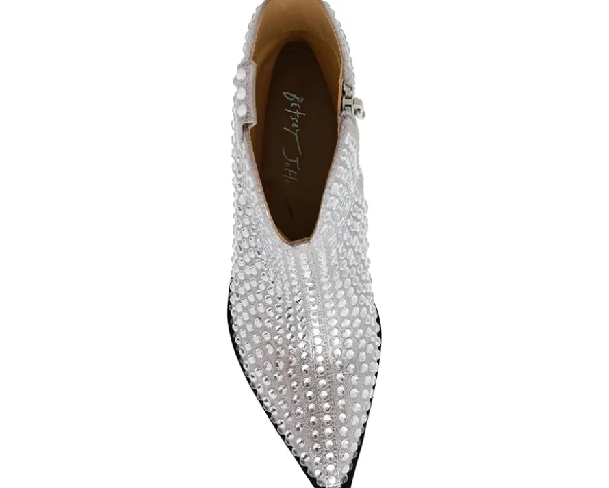 - The perfect reason to glam up any look of yours! The Neil booties by Blue™ by Betsey Johnson are Nashville by way of Las Vegas with the classic curved topline, snipped toe, and angled block heel of a cowboy boot plus allover rhinestone embellishment to spice things up. The chunky rhinestone studs encrusting the upper add both texture and sparkle to these glamorous ankle-high boots.
