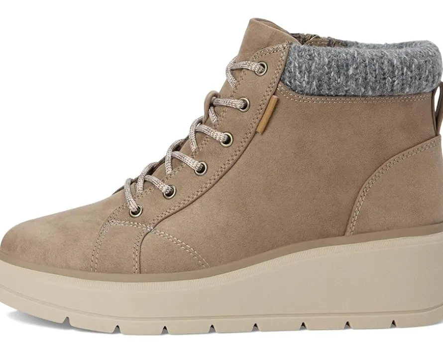 - Comfortable and durable, the Dr. Scholl’s® Nice Day Max Alpine boots feature a faux fur collar that keeps your feet warm and cozy. The partially recycled wool blend upper of these boots comes with a lace-up closure for a secure fit. These ankle boots are made of a 15% cushy plant-based BLOOM® foam insole with Insole technology that delivers cushioning, comfort, and support. The fabric linings, topcloth, toe box, and heel counter are partially made from recycled plastic bottles. Get ready for the cold weather wearing these lace-up boots.