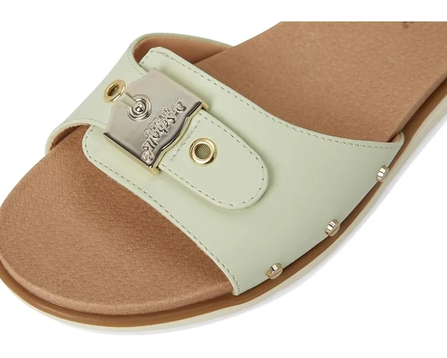 - The Dr. Scholl’s® Nice Iconic Slides with iconic details and legendary comfort are oh-so-nice. Their low-chemical faux leather upper features a slip-on fit with adjustable hook-and-loop closure for easy wear. These platform sandals are made of a foam insole that provides cushioned comfort. The fabric lining is partially made from recycled plastic bottles. Their lightweight and flexible construction moves with you. Slide into the season with original style in these slip-on sandals, packed with travel-ready comfort and ease.