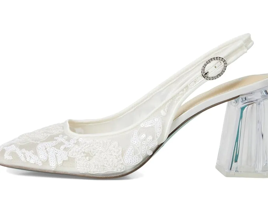 - Drawn to dazzling, Blue™ by Betsey Johnson Ninah. This modern mesh masterpiece redefines evening glam with a playful twist. Featuring a breathable mesh upper that adds texture and edge, a synthetic lining for smooth comfort, and a PU insole and outsole designed for durability and ease, the Ninah is the statement piece your shoe rack craves. The sleek slingback strap with a buckle closure ensures a secure fit, while the square toe and sturdy block heel blend all-day comfort with fashion-forward flair.