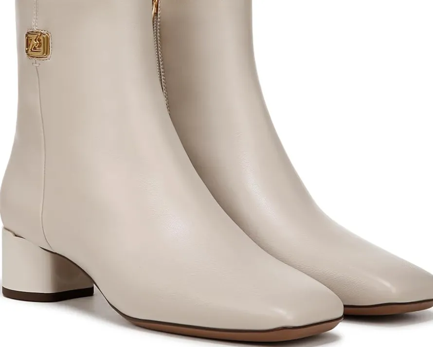 - The Franco Sarto® Noah boots blend a modern silhouette with timeless Italian craftsmanship. These heeled booties are designed with a faux leather upper that is made from partially recycled materials and styled with a metallic ornament. The foam insole and polyurethane lining keep your feet cool and comfortable. These ankle booties feature a zippered side closure for easy on and off. Perfect to wear to work, office, events, and parties, these pull-on boots make a great addition to your footwear collection.