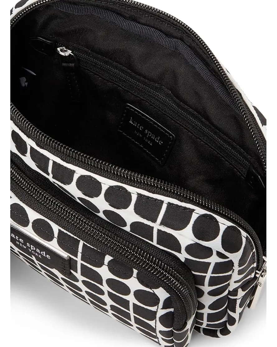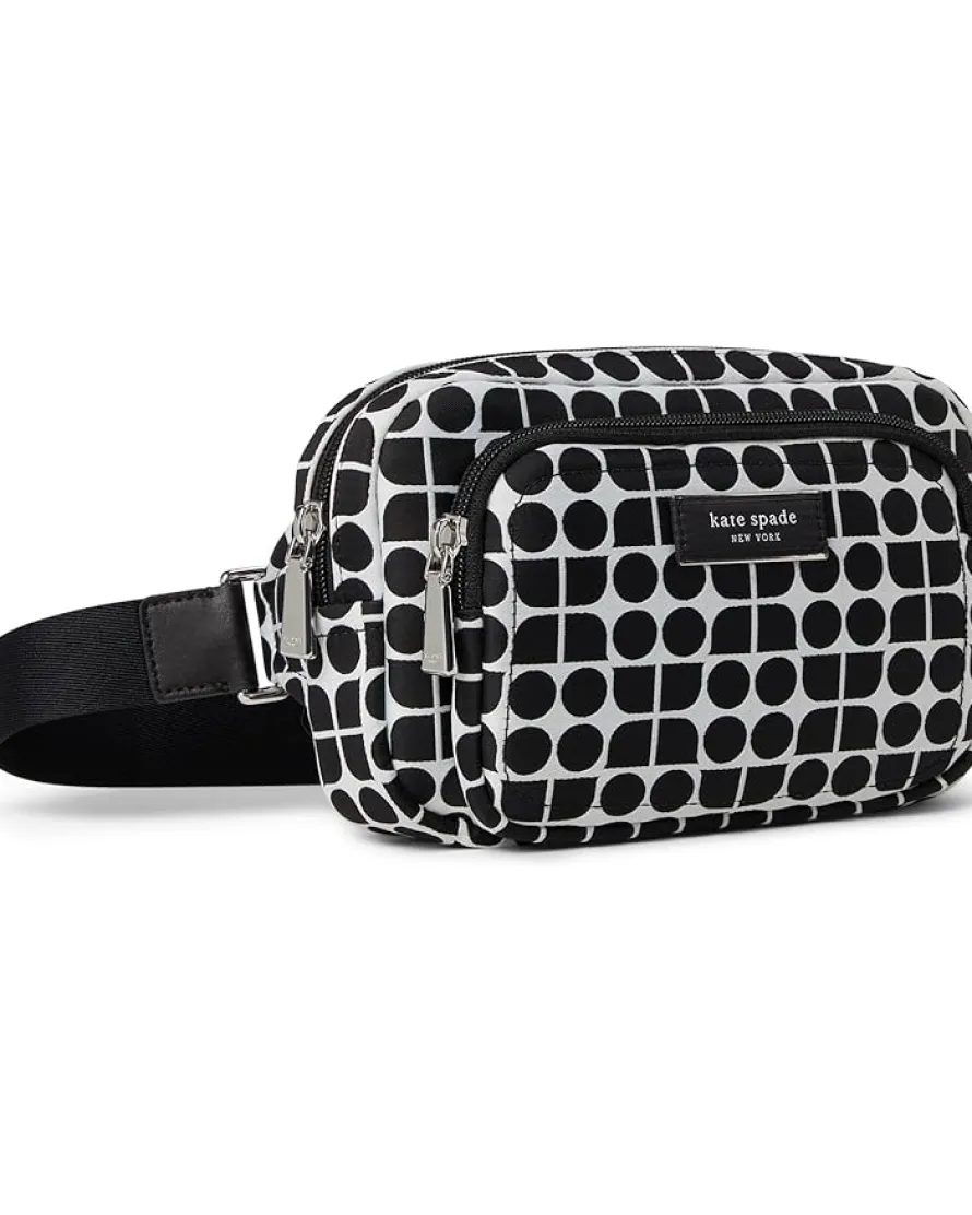 - Set a voguish statement as you carry the Kate Spade New York® Noel Printed Fabric Belt Bag. The polka dot rectangular bag features one zippered compartment with an adjustable strap and exterior zippered pocket.