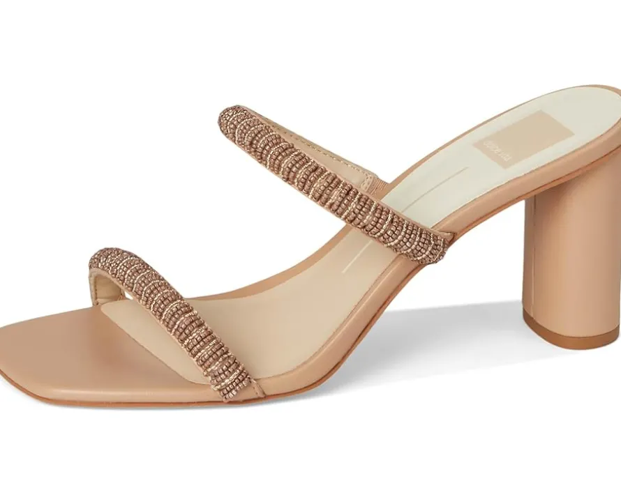 - Dolce Vita® Nolah, a stylish heeled sandal offering a chic look and versatile comfort for various occasions. Crafted from leather upper, lining, and insole, this pair of sandals features open square toe, two strap detailing, block heel, and brand detailing on the footbed.