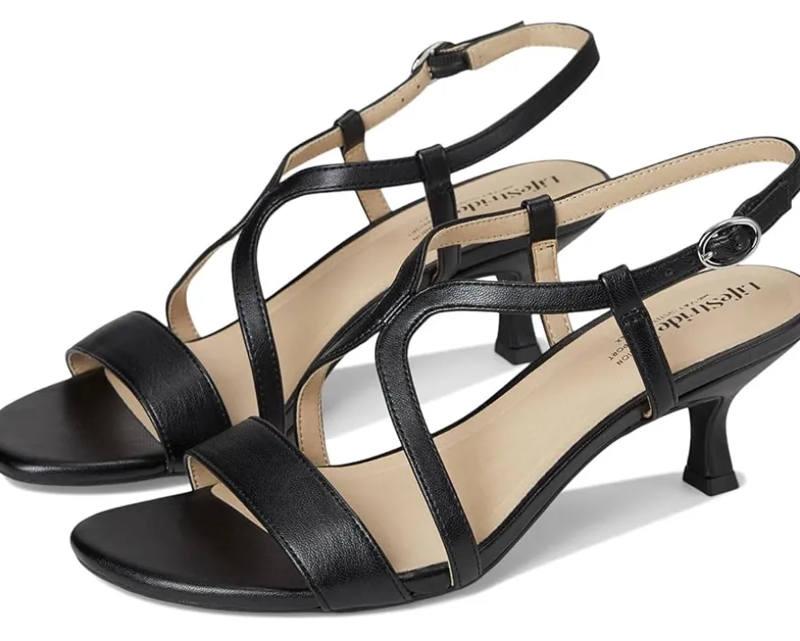 - The LifeStride® Nolita strappy heels seem like a dream-come-true! The combination of style, comfort, and sustainability makes them a fantastic choice. The hourglass-shaped heel and adjustable buckle not only add a trendy touch but also ensure a perfect fit. Plus, the Trusted Soft System® comfort technology means you can strut your stuff with confidence from morning till night.