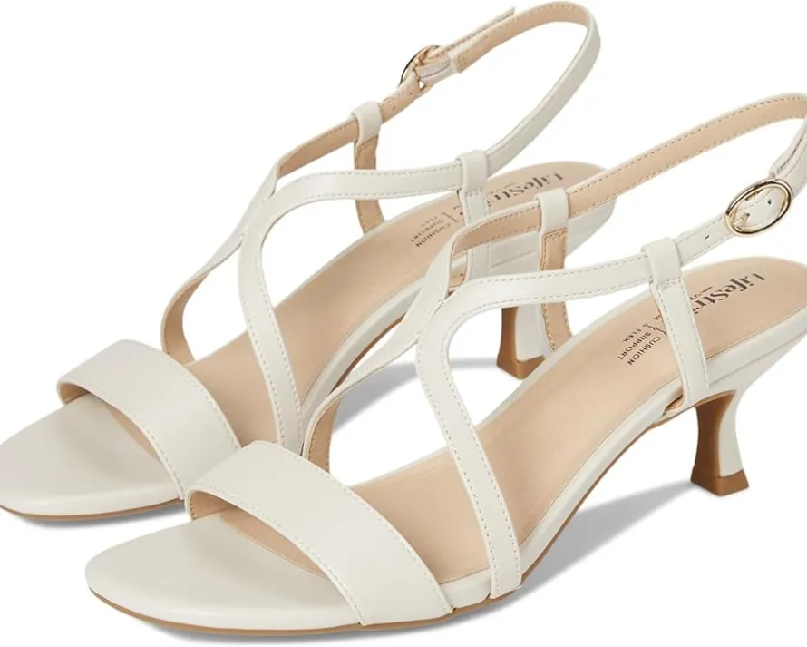 - The LifeStride® Nolita strappy heels seem like a dream-come-true! The combination of style, comfort, and sustainability makes them a fantastic choice. The hourglass-shaped heel and adjustable buckle not only add a trendy touch but also ensure a perfect fit. Plus, the Trusted Soft System® comfort technology means you can strut your stuff with confidence from morning till night.