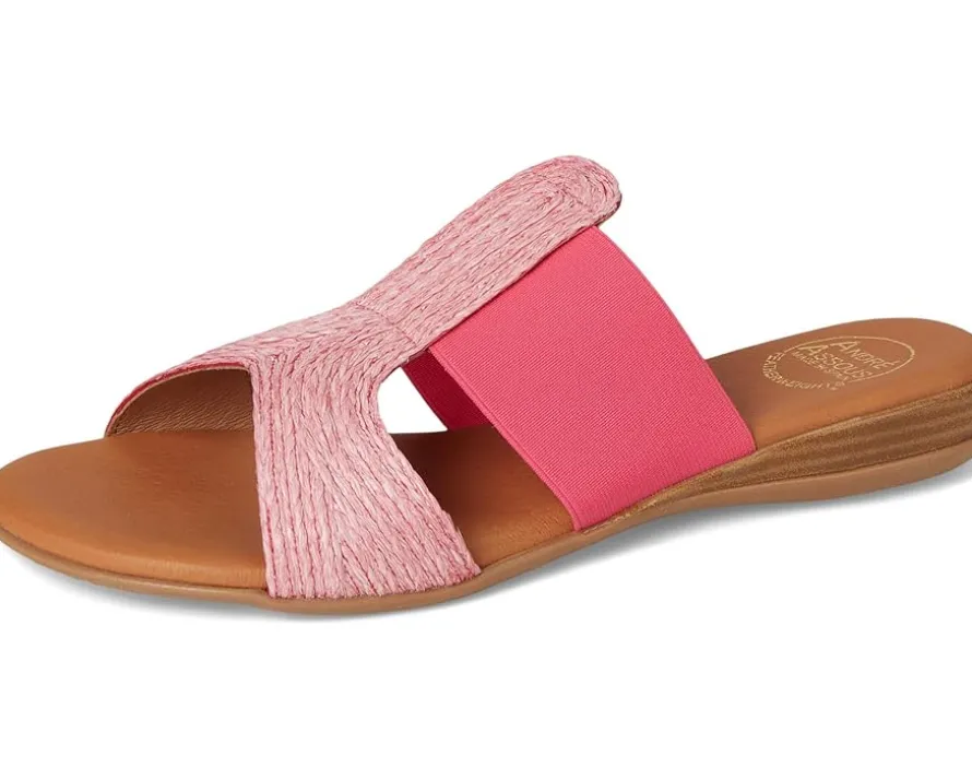 - Enjoy pleasurable comfort while walking down the lane wearing Andre Assous™ Noor Flat Sandals. The slip-on footwear features textured jute upper construction with breathable leather lining and cushioned footbed.