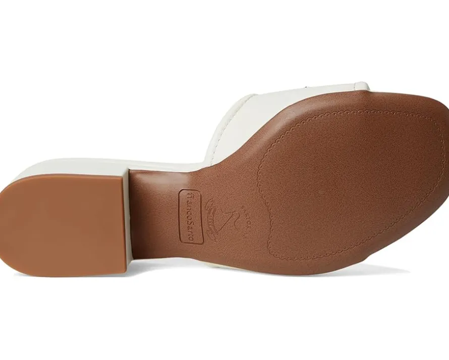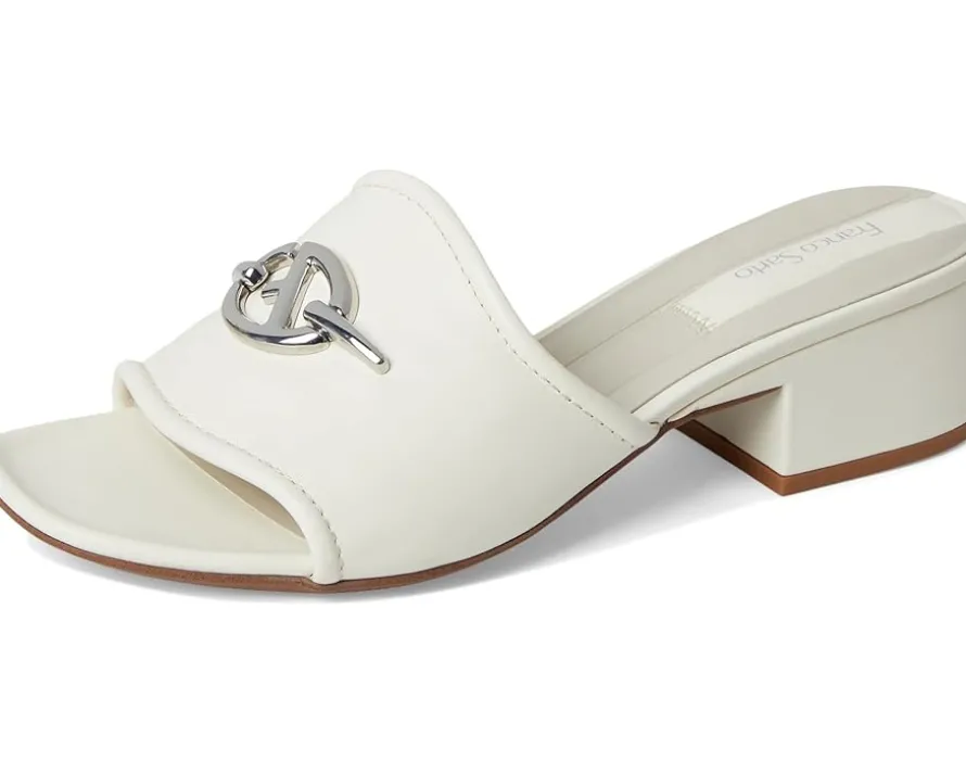 - Slide into sleek sophistication in the Franco Sarto® Noreen Sandals, beautifully detailed with a stunning artistic metal ornament and a solid block heel. The slip-on style mule sandals are artfully crafted with a leather upper, polyurethane lining, and a comfortable foam insole.