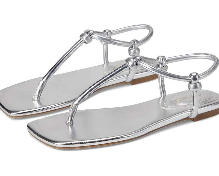 - Complete your look in the Nine West® Nortny sandals. These flat sandals feature a modern square toe shape, knot detailing, and a sleek silhouette. They are made of a faux leather upper and cushioned insole. These slip-on sandals are a must-have wardrobe essential.