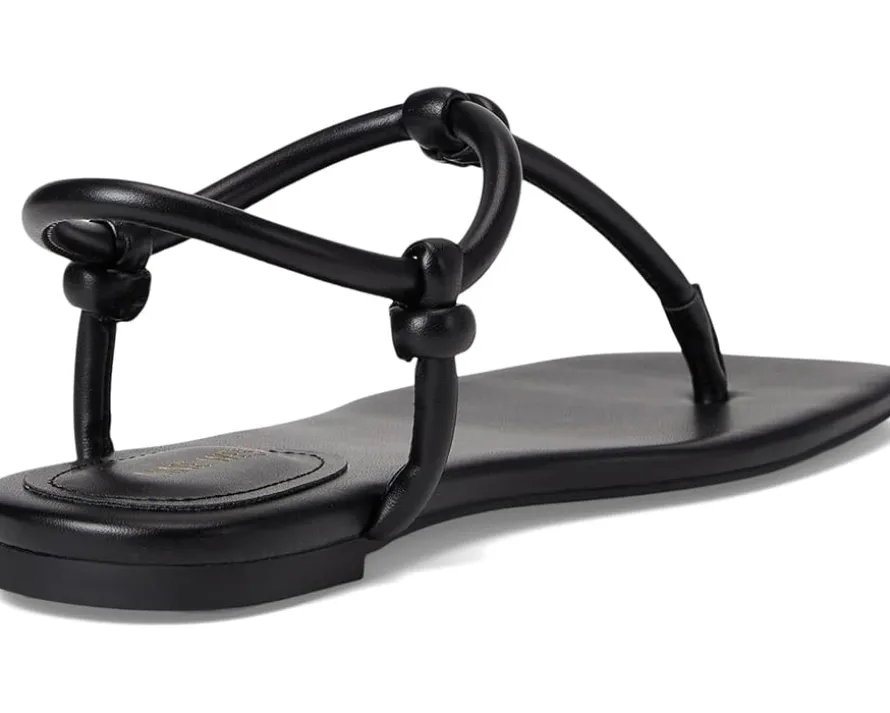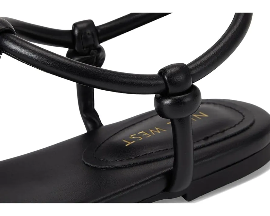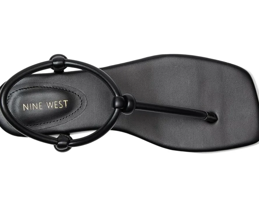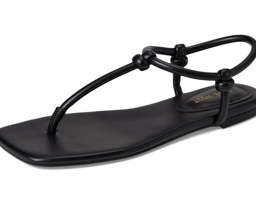 - Complete your look in the Nine West® Nortny sandals. These flat sandals feature a modern square toe shape, knot detailing, and a sleek silhouette. They are made of a faux leather upper and cushioned insole. These slip-on sandals are a must-have wardrobe essential.