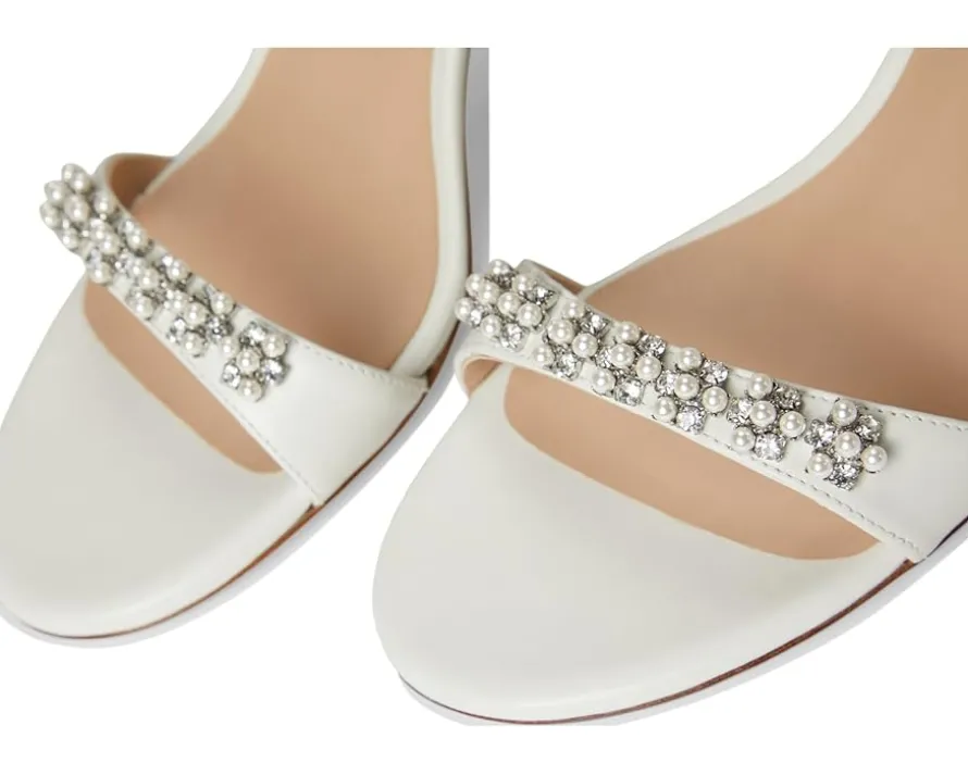 - Stuart Weitzman® Nudist Poppy Block 75: Experience the epitome of luxury and comfort. Crafted with luxurious lamb leather upper and embellished with lacquered nappa, crystal, and pearl accents, these sandals exude sophistication from every angle. The block heel provides the perfect balance of style and comfort, while the cow leather outsole ensures durability. Featuring an open-toe design and a secure buckle ankle strap closure, this versatile sandal is perfect for elevating any look, from daytime chic to evening glam.
