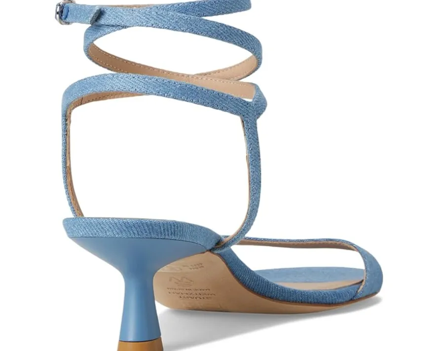 - Confidence in every step: The Stuart Weitzman® Nudist Wrap 50 is where style and sophistication intersect. This stunning stiletto heel features a luxe leather upper, complemented by mestizo leather and vintage denim lining for a touch of opulence and durability. The leather insole and outsole ensure lasting comfort while providing the perfect foundation for all-day wear. The wrap-around buckle strap adds a chic, adjustable fit, while the open-toe design gives a subtle yet bold statement. Elevate any outfit with these show-stopping heels that effortlessly transition from day to night.