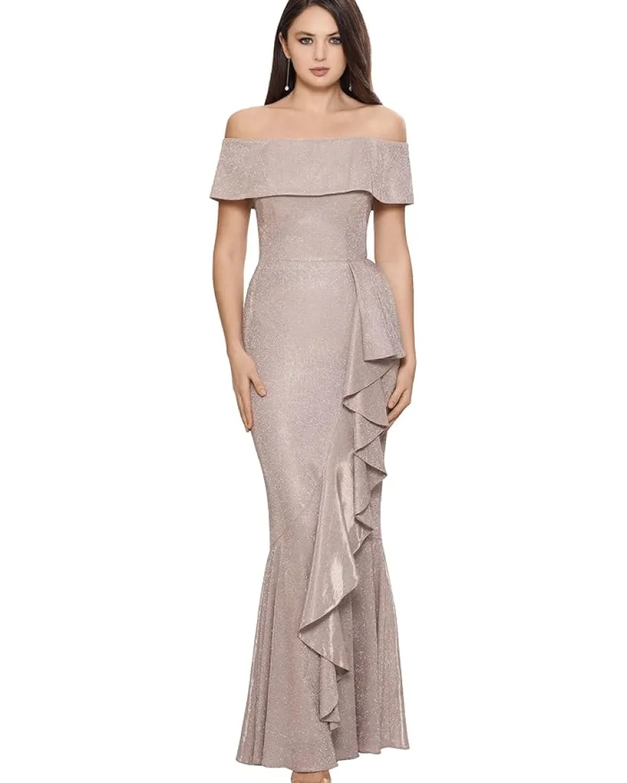 - All eyes will be on you with the Betsy & Adam™ Off-the-Shoulder Glitter Gown!
