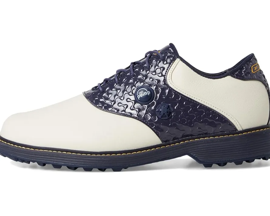 - The Reebok® OG Pump Golf shoes are created for the man with ultimate elegance. Crafted from faux leather upper, textile lining, and rubber insole, this pair of shoes are designed with lightweight, cushioned materials for all-day comfort on and off the course. It features round toe, iconic saddle design, lace-up closure and unique design.