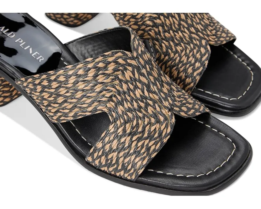 - Ease into elegance like only Donald Pliner® can with the Ohara, a perfect union of artisanal quality and all-day ease. This slip-on stunner features a two-tone woven raffia upper that exudes a breezy, textural charm with every step. Its anatomical open-toe shape and sculpted mid heel create a flattering silhouette, and memory foam-padded insole and buffed leather sole lend plush cushioning for unrivaled ease. A modern chunky covered block heel and a rubber outsole with forepart traction means you can confidently stride from day to night.