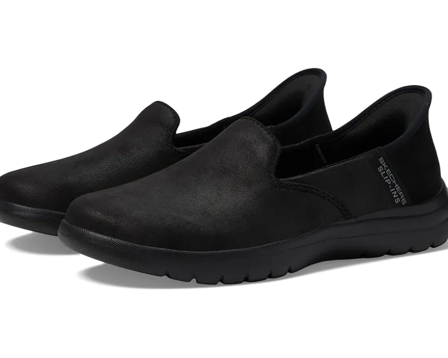 - Walk with ease wearing the stylish SKECHERS® Performance On-The-Go Flex – Captivating Hands Free Slip-Ins. Crafted for the modern woman, this pair of shoes features round toe design, flat heel, and exclusive heel pillow to hold your foot in place. It has faux leather Perform Tex upper and Air-Cooled Memory Foam comfort insole.