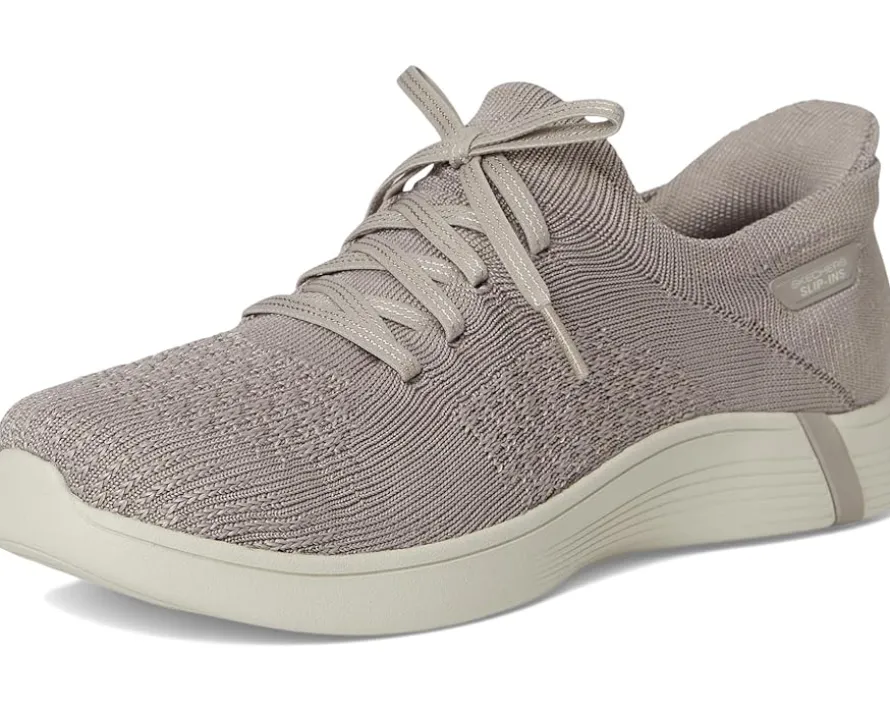 - The SKECHERS® Performance On-The-Go Hands Free Slip-ins Swift w/ Knit Fit redefine convenience with a modern twist. Crafted with a sleek polyester knit upper and soft polyester lining, these slip-ons feature fixed laces for a ready-to-go look, while the innovative Heel Pillow™ ensures your foot slides in and stays perfectly in place. The lightweight ULTRA GO® cushioned midsole delivers responsive comfort with every step, and the EVA insole and outsole offer all-day support and traction without the bulk. Designed for life in motion, this pair blends sporty-chic appeal with next-level ease, making them perfect for quick errands, travel days, or everyday wear.