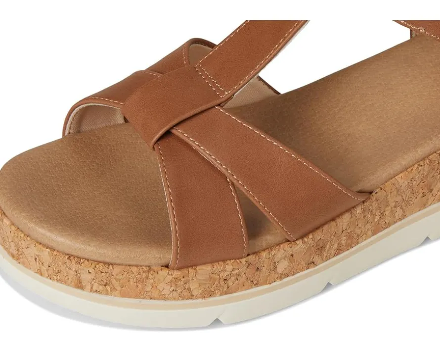- The Dr. Scholl’s® Once Again is a comfy, casual womens sandals with an espadrille-inspired design. These open round-toe sandals are crafted with a low chemical faux leather upper with a hook-and-loop closure for easy on/off, faux leather lining. and foam insole. These feature an ankle strap & buckle closure along with a stunning wedge heel detail.