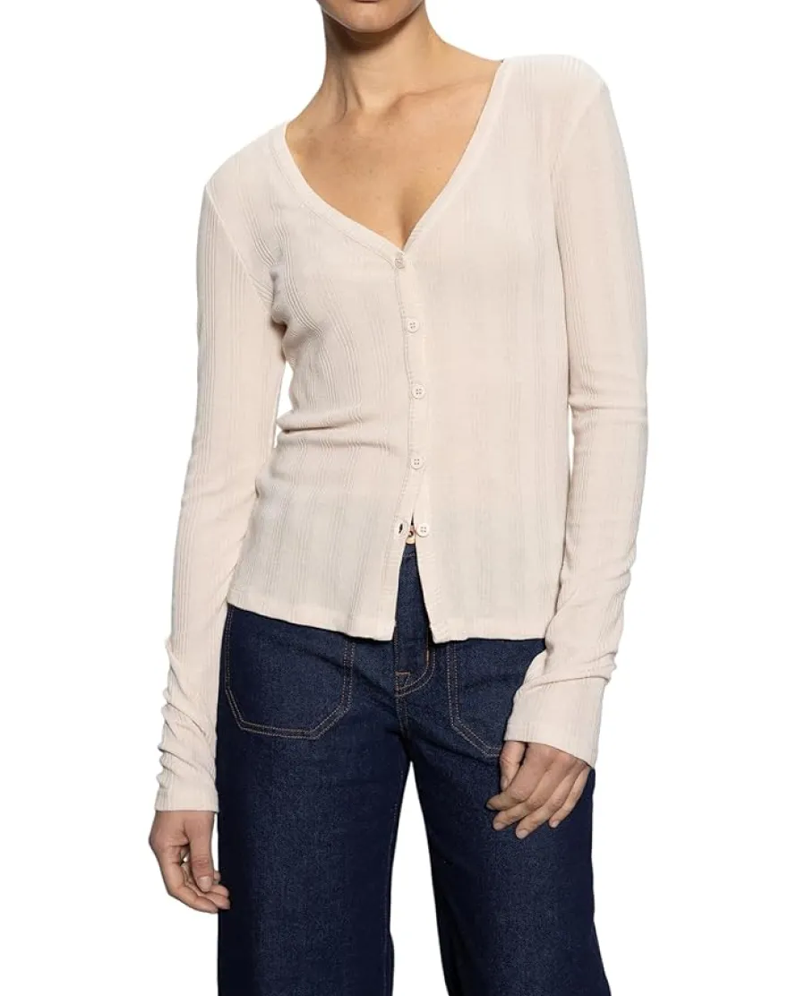 - Maintain your casual chic style in the Sanctuary™ Only Gaze Knit. This top offers V-neckline with a front button-closure, long sleeves and a straight hem. Pair it perfectly with your favorite pants or denim for an effortless look.