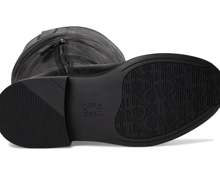 - Experience free rein in these Naturalizer® Ontime Extra Wide Calf Knee High Boots crafted with sleek lines and wear-everywhere comfort. These tall boots are designed with western-inspired stitching and a side pull tab. The leather upper features a full-length zippered side closure for easy on and off. Their Contour+ Comfort technology provides a premium fit and all-day comfort experience. These heeled boots are made of a foam insole and fabric lining.