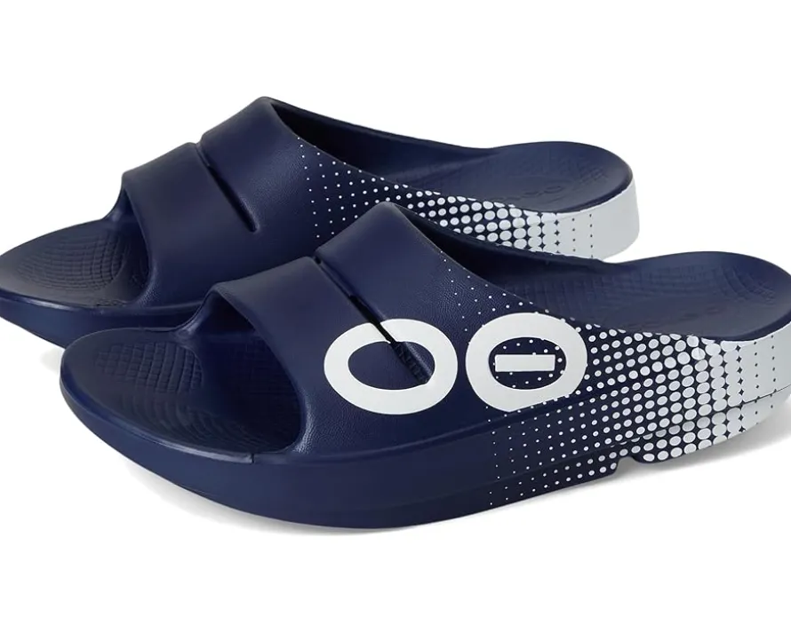 - Slide into comfort and style wearing the OOFOS® OOahh Sport Slide slippers. Cushioned and comfortable, these slides come with a rubber upper and insole that makes them a durable choice. The water-resistant construction of these slippers makes them perfect for your beach trips. Cushioned and APMA-approved, these rubber slippers make a great addition to your footwear collection.