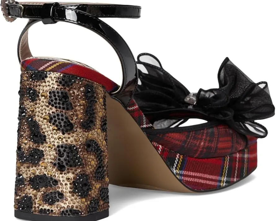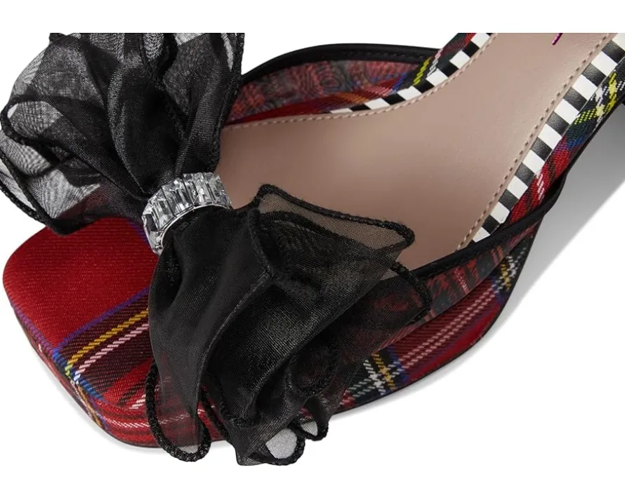 - The Blue™ by Betsey Johnson Palloma sandal features a large flower and crystal embellishments that bring an eye-catching flair. The squared open toe design, ankle strap with buckle closure, and sculpted block heel offer both elegance and support.