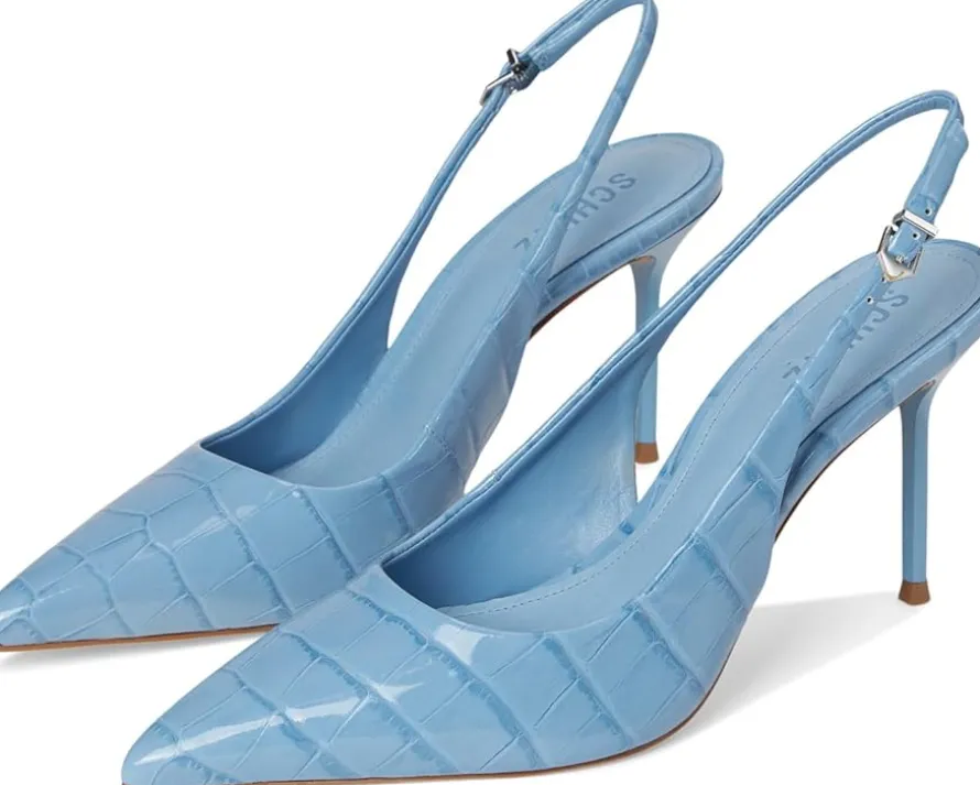 - Step into style wearing the Schutz® Paola heels. Made with trendy croc-embossed leather upper and featuring fierce pointed toes, these stiletto heels are perfect for any fashion-forward individual. The adjustable slingback strap with buckle closure offers a customizable fit, while the leather lining and EVA insole provide added comfort and support.