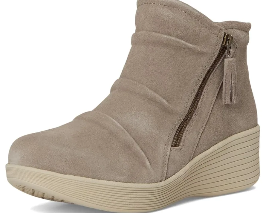 - Confidence in every step wearing SKECHERS® Parallel Lite. Designed with a sleek leather upper treated with 3M Scotchguard®, it resists water and stains so you stay polished no matter what the forecast brings. The zippered side closure ensures easy wear, while the ankle-high silhouette paired with a chic wedge heel gives you a lift that’s both flattering and versatile. Inside, the Air-Cooled Memory Foam® cushioned comfort insole keeps every step breathable and supported, while the lightweight shock-absorbing midsole reduces impact so you can keep moving effortlessly from day to night. A fabric lining adds softness against the skin, while the durable rubber outsole provides dependable traction. Finished with a plain toe for timeless appeal, this casual wedge is the perfect balance of everyday function and elevated fashion.