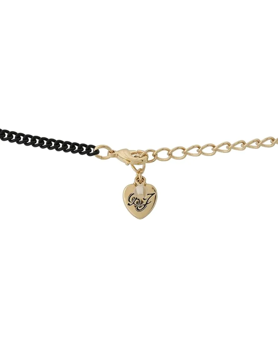 - Delicate black necklace features a gold-tone “PARIS” pendant with AB rhinestone accents.