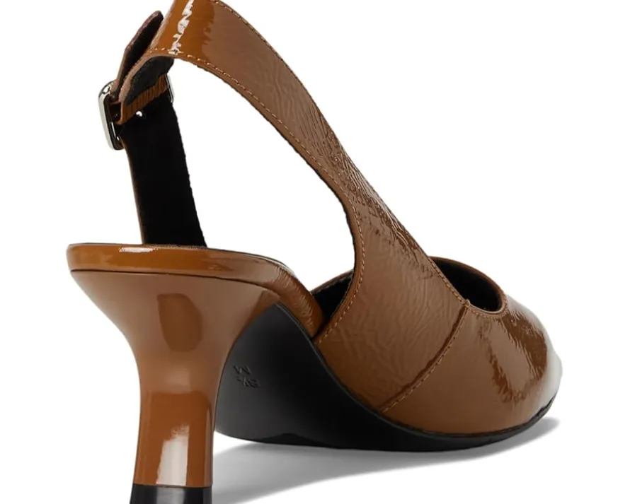 - The Vaneli® Patti Pumps are made with the finest materials and are made to be comfortable and fashionable! The slip-on style heels come with a leather upper, leather lining, and a cushioned rubber insole. The adjustable backstrap with buckle closure ensures a secure fit and the kitten heel adds height to your look.