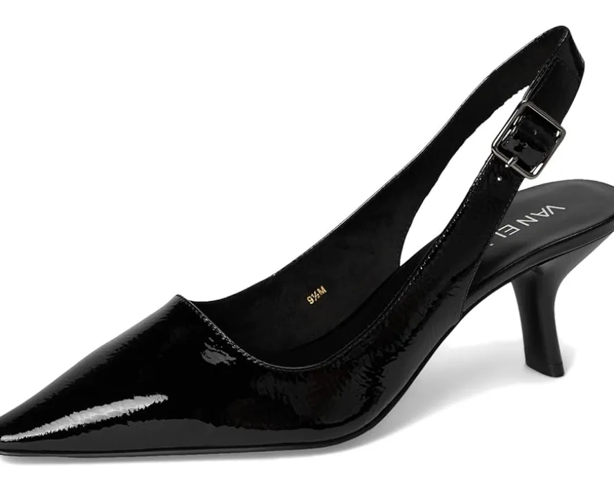 - The Vaneli® Patti Pumps are made with the finest materials and are made to be comfortable and fashionable! The slip-on style heels come with a leather upper, leather lining, and a cushioned rubber insole. The adjustable backstrap with buckle closure ensures a secure fit and the kitten heel adds height to your look.