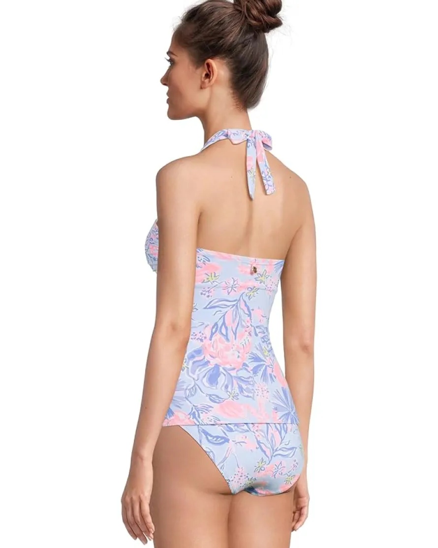 - Turn heads poolside and seaside in the Lilly Pulitzer® Peggi Tankini Top – where flirty florals meet flawless function. This one-piece halter tankini features a chic V-hardware detail and stylish shirring at the bust for a flattering, feminine silhouette. Sleeveless for sun-kissed shoulders and effortless movement, it’s made to soak up sunshine and compliments. The easy pull-on design means no fuss, just fabulous.