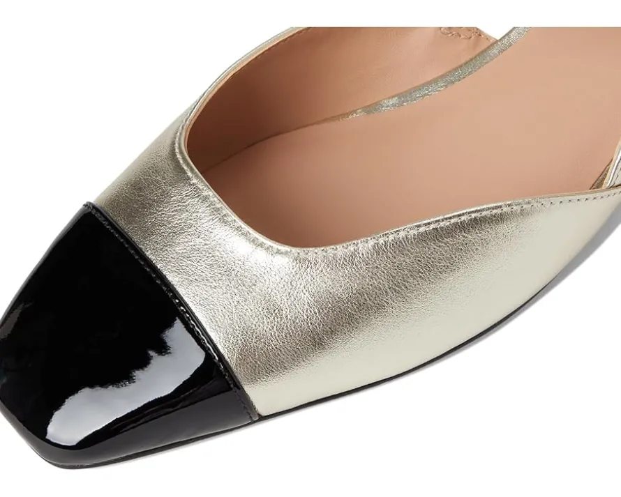 - Chic, sleek, and totally on-point – Cole Haan® Pella Block Heel Slings. Crafted with a premium leather upper, lining, insole, and outsole, this modern posted quarter-strap open-back pump features a sleek cap-toe detail that brings elegance to every step. The Cole Haan-branded buckle adds a touch of luxury while offering easy adjustability and a secure fit. Inside, a fully padded sock lining and soft PU and textile linings deliver day-to-night comfort. Finished with a buffed synthetic outsole made with recycled rubber content and a laser-weave design at the forepart for enhanced traction, these slings aren’t just stylish-they’re sustainably savvy too.