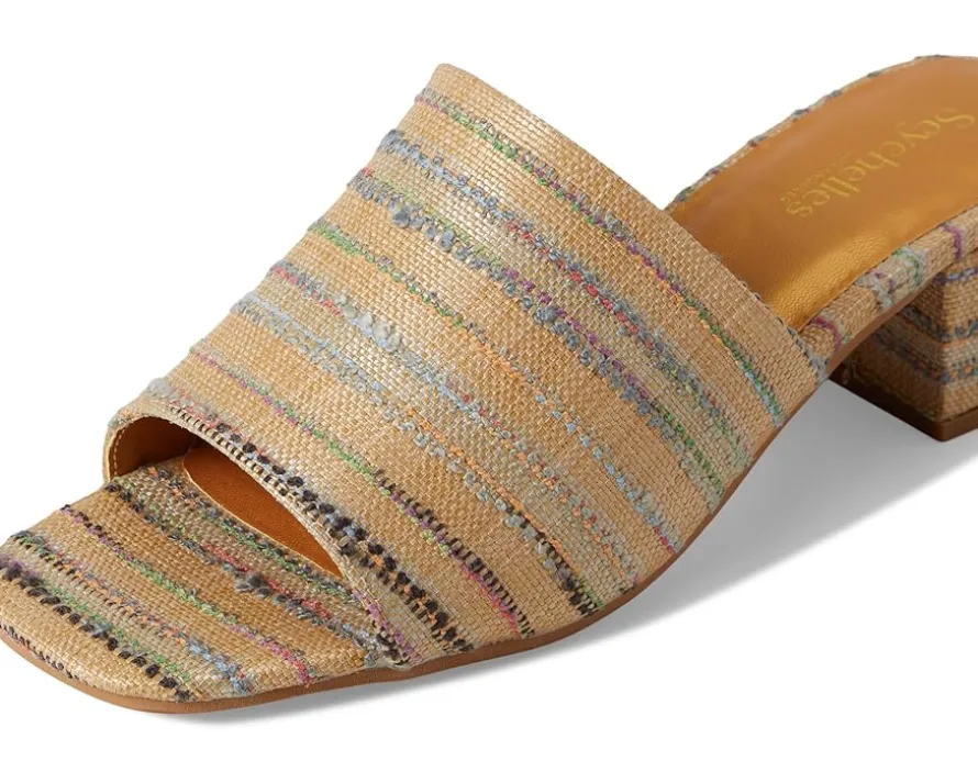 - A texture of elegance: Try these new Seychelles® Pepper Stripe Raffia slides. Fashion-forward and effortless, these must-have slip-ons feature a modern square toe and low-block heel. A lightweight polypropylene upper meets a soft PU lining for elegant foot coverage, but it’s the faux fur insole that delivers plush comfort with every step. Potentially your most playful pair of warm-weather walks yet, these slides are finished in a durable synthetic rubber outsole for reliable grip, with trend sustainability to boot.
