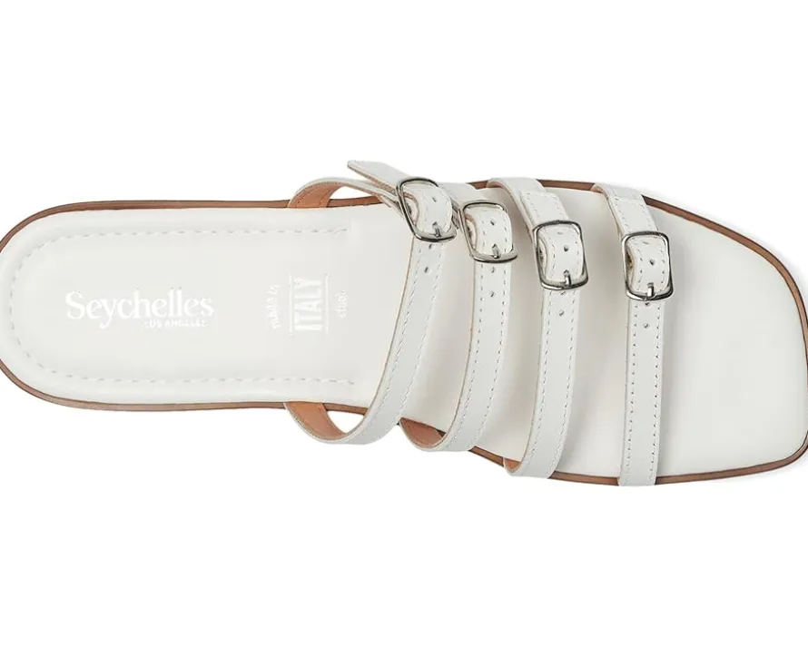 - The Persuasion Leather by Seychelles® features adjustable buckle straps, a comfy padded insole, and a modern square toe design, and will quickly become your go-to warm weather sandal. The slides are made with strappy leather upper, polyurethane lining, and EVA insole.