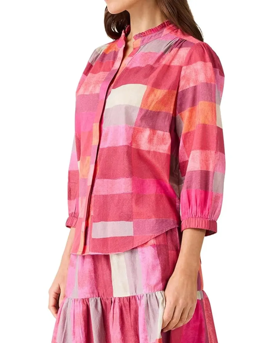 - The NIC+ZOE™ Petite Sunset Plaid Cotton Girlfriend Shirt has been updated with a season-less print inspired by ocean sunsets. It’s not just the horizon-inspired color that makes this piece stand out: the shirt’s back has shirring detail that adds interest and shape, while the stand collar neckline has unique shirring too. It features three-quarter-length sleeves with elasticized cuffs and buttoned front closure.