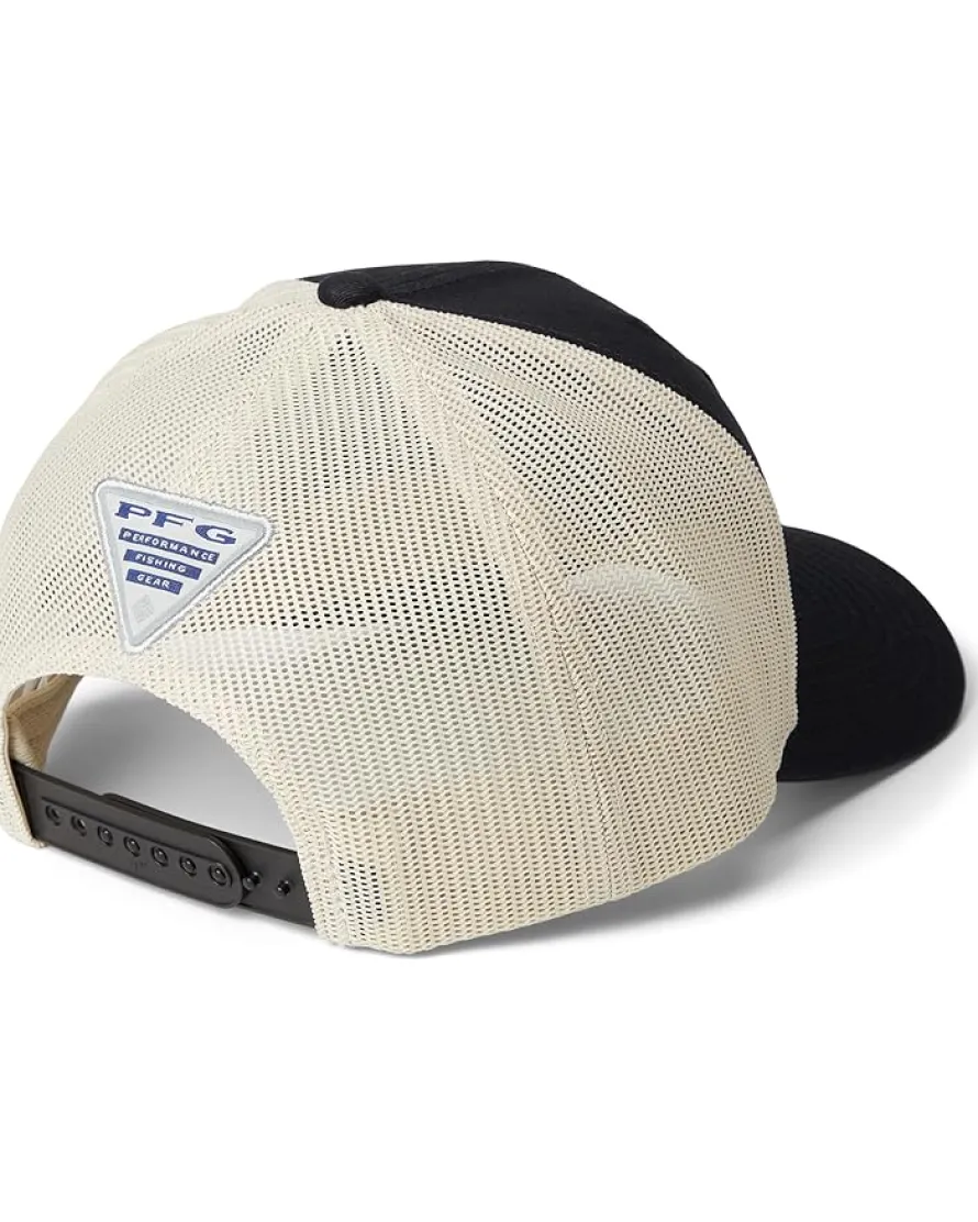 - Amp up your look wearing Columbia® PFG Fish Flag Mesh Snap Back Hat for casual day outs or morning running sessions. The cap features a six-panel design, a slightly curved brim, patchwork at the front, mesh panels for breathability, and an adjustable snapback closure.