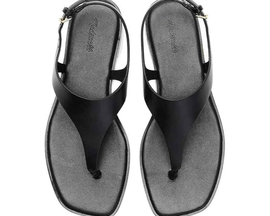 - Simple, yet elegant. Elevate your warm weather style in the Madewell® Piaule Thong Ankle Strap sandals. Crafted from a smooth leather upper, these sandals feature an adjustable buckle strap closure, square toe silhouette, and leather lining and insole.