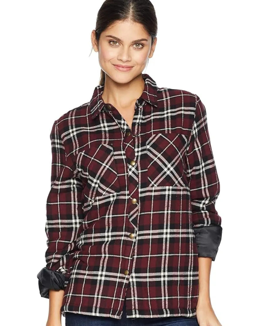 - Relaxed fit flannel features sherpa lining and a yarn-dyed plaid for effortless coziness.