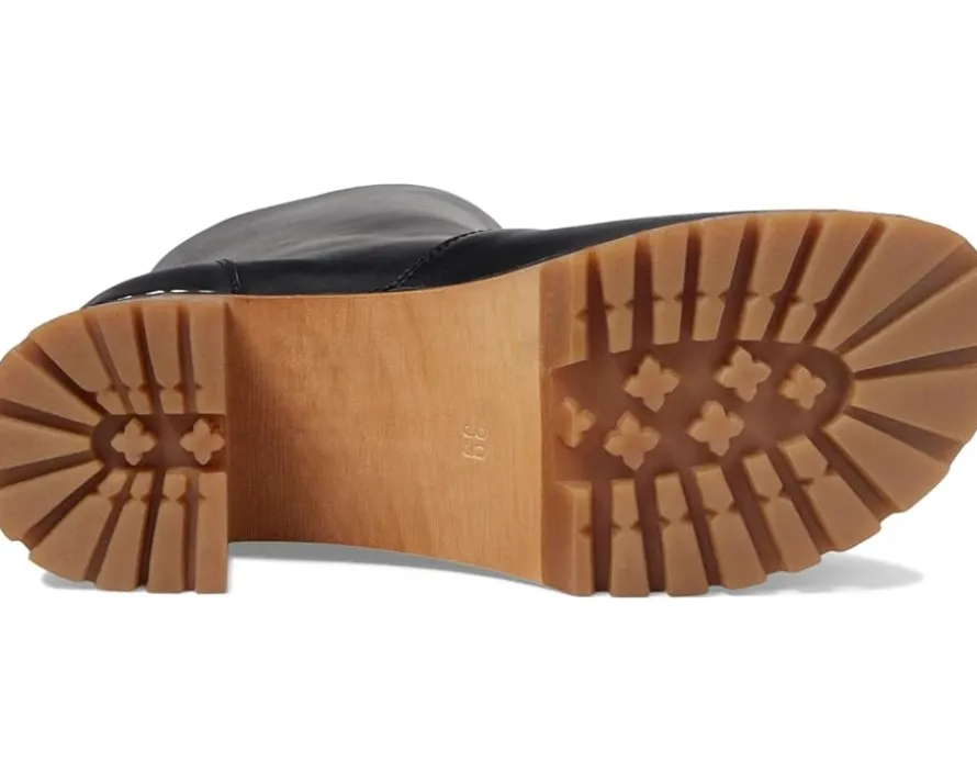 - Define your modish and bold look wearing the Swedish Hasbeens® Plain Boot. These mid calf pairs of boots feature round toe design, pull-on construction, and leather upper. The block heel boots have Limewood tree footbed.