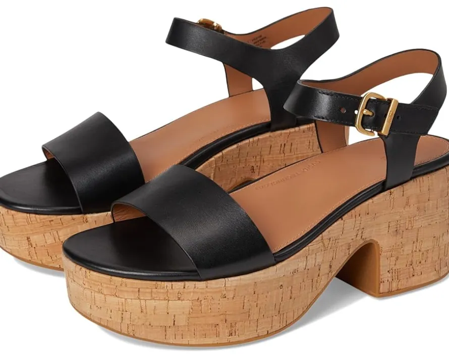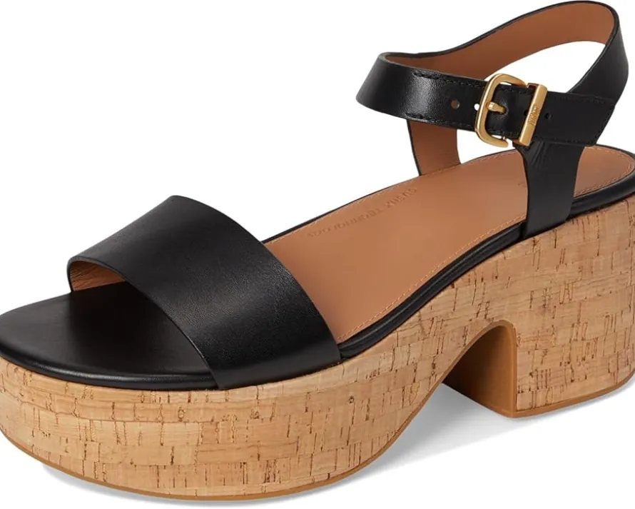 - Modern and refined, the FitFlop™ Platforms Leather/Cork Heeled Ankle-Strap Sandals are possibly the world’s most comfortable high heels. Soft, light, and superbly cushioned, these espadrille fisherman sandals team a strappy raw-edge leather upper with a classic high-wedge rubber outsole, wrapped in natural jute for summery vibes. A curvy brushed-metal buckle adjusts the fit and an anatomically contoured leather footbed diffuses pressure & gives natural arch support. Their CushX midsole has soft EVA cushioning inside a firmer EVA shell, with heel-to-forefoot angle/contoured top line optimizing alignment and comfort in high heels while the polyester lining offers breathability. The adjustable ankle strap with a metal buckle ensures a perfect fit. Ergonomically engineered to help optimize your body’s alignment, natural movement & energy, these heeled sandals feature an impact pillow at the forefoot for extra cushioning.