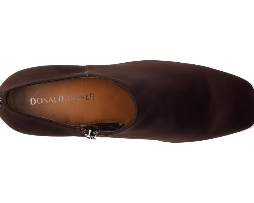 - Elevate your footwear collection with these sophisticated Donald Pliner® Pleeze booties. These heeled boots are made of a memory foam-padded insole. Blending classic elegance with a modern touch, they feature bold block heels for a statement-making finish. The leather upper features a zippered side closure for easy entry. These ankle-high boots make a stylish addition to your footwear collection.