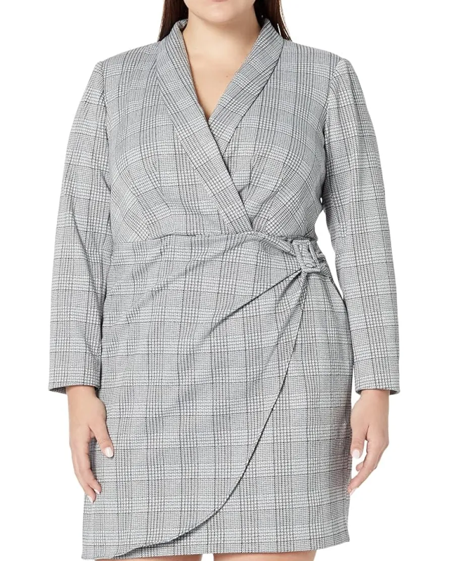- Stun everyone with your charismatic style by donning the Donna Morgan™ Plus Size Metallic Plaid Blazer Dress.