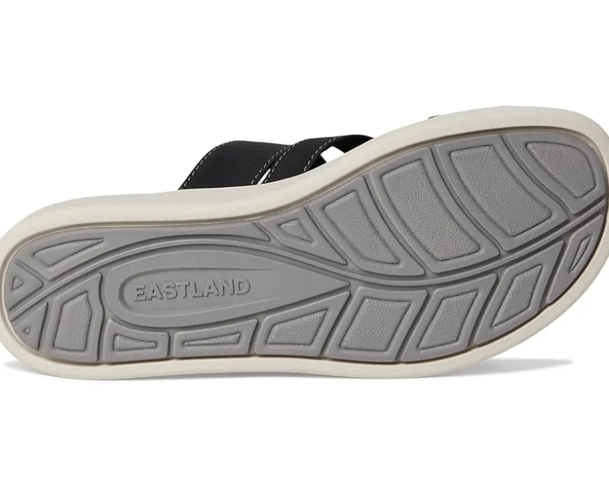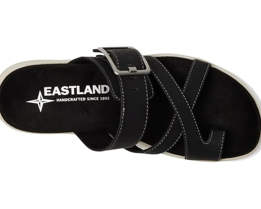 - The Eastland 1955 Edition® Port Clyde sandals feature an oversized buckle that adds a touch of modern sophistication to their design. It is crafted from PU upper, micro-suede fabric lining for barefoot comfort, and lined, contoured cushioned footbed for all day comfort and support. It comes with open toe, adjustable strap detailing, and brand logo on the footbed.