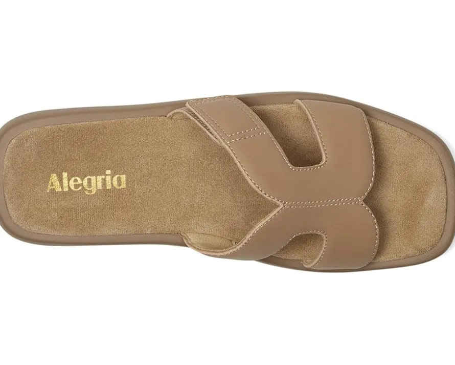- Discover the Alegria® Portia, a perfect fusion of high fashion and exceptional comfort. Inspired by timeless silhouette, this open back slide sandal features a sleek design crafted from premium materials that exude sophistication. The plush, cushioned footbed is expertly contoured to provide superior arch support, ensuring that every step you take is as comfortable as it is stylish. Whether you are strolling through the city or relaxing by the pool, these sandals offer unparalleled comfort without compromising on luxury. Make a statement with a women’s comfort sandal that speaks to your impeccable taste and commitment to quality. Following the same design as the renowned and podiatrist certified ergonomically supportive footbed found in Alegria Classic clog, Alegria Paloma and Alegria Keli styles, trust that your feet will be breathable, supported comfort with every step.