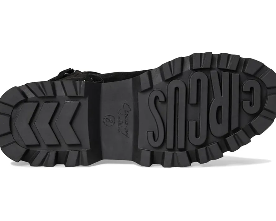 - The Circus by Sam Edelman® Primm boot reimagines the classic combat silhouette with a refined, fashion-forward twist. Designed to balance edge and elegance, it features a sleek profile, chunky lug sole, and a bold statement buckle detail that adds modern polish. The suede upper and streamlined shape elevate its street-style appeal, while the rugged synthetic rubber outsole ensures traction and durability.